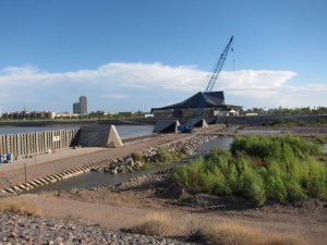 I started this weekend wanting to write about Tempe Town Lake, which was dammed with eight inflatable rubber bladders for 10 years, up until one segment burst in July and drained the lake. I figured I’d do some reading to learn more about the history of the dam and the inflatable rubber as a dam option, and I’d visit the dam and take some photos and walk around and then come up with some sort of witty retort related to the irony of the situation.